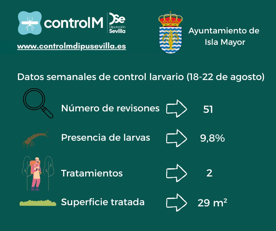 El Ayuntamiento de Isla Mayor, en colaboración con la Diputación de Sevilla y el programa ControlM, continúa con las labores de vigilancia y tratamiento preventivo frente al virus del Nilo Occidental.